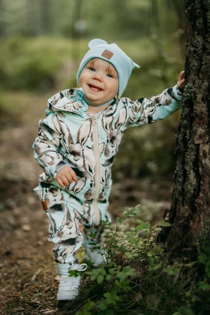Collegehaalari on yksi niistä vaatekappaleista, joka yhdistää mukavuuden, käytännöllisyyden ja suloisuuden. Se on tarpeeksi lämmin viileämpiin päiviin, mutta silti hengittävä, mikä tekee siitä erinomaisen valinnan niin sisäkäyttöön kuin ulkovaatteiden alle. Haalarin yksi parhaista puolista on sen yksiosaisuus: pukeminen on nopeaa, eikä vyötärönauhoja tai nousevia puseroita tarvitse asetella. Se on helppo vetää päälle myös silloin, kun vauva on väsynyt tai liikkuvainen – vanhemman näkökulmasta nopeus on joskus kaikki kaikessa.